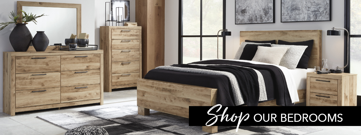 Add homespun charm to your restful retreat with this bedroom package. A modern take on timeless silhouettes, it pairs a dark finish with light tops...