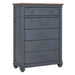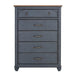 The Americana Chest boasts a refreshing coastal twist on traditional style. Skillfully crafted from Rubberwood Solids and Birch Veneers, the subtle distressing Corduroy Blue finish and Antique Pewter hardware give this Chest an updated look with a timeless heirloom feel. Featuring five drawers with felt lined top drawer, this Chest will provide ample storage space for clothing and accessories. Just like Baseball, Apple Pie and Rock & Roll, the Americana Chest of Drawers will become a beloved favorite in your home. Fully assembled upon arrival, this piece from Bridgevine Home is ready to unbox and enjoy