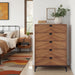 - Bring home the Astoria Chest to furnish your main or spare bedroom in modern, contemporary style. Five drawers with a felt lined top drawer will provide ample storage for apparel and linens. Crafted from Acacia Solids and Veneers, this showstopping chest features a crisp chevron pattern in a Natural finish that beautifully showcases the unique characteristics of the wood grain. A Black Metal Base and Hardware complete this upscale look.