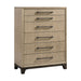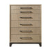 The Sutton Place bedroom collection embodies relaxed contemporary style with a focus on the natural beauty of oak. Crafted with tight-grain, matched oak veneers over hardwood solids, each piece features a warm two-tone finish of caramel atop a cocoa base. Dark bronze bar pulls add subtle contrast, while select pieces showcase asymmetrical drawer configurations for unique visual appeal. The collection is anchored by a framed panel headboard paired with a panel or storage footboard, bringing a sophisticated yet comfortable look to your bedroom space.