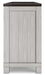 • Glazed light gray painted finish with brown cherry-stained shelves and top