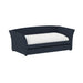 The Vienna daybed is a versatile addition to any space, whether it's a home office or a studio apartment. Its flared arms and gently curved back are upholstered in a navy blue woven fabric, offering a stylish look. By day, pile on the pillows to create the perfect lounging spot; by night, pull back the covers for a cozy bed. The convenient trundle pulls out effortlessly, serving as hidden storage with a divider bar or accommodating a second twin mattress for overnight guests. Enjoy the extra functionality and charm the Vienna daybed will bring to your home.