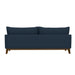 • The Aria sofa brings mid-century character to the modern age in classic navy and an exposed solid wood frame.