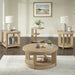 Bring the outside in with the light and airy, casual style of the Pacific Grove collection. You’ll find a perfect blend of modern, rustic, and coastal design aesthetics with rounded shapes and neutral tones. Solid hardwood construction ensures longevity to the large cocktail table on casters and three different end tables. The multi-step warm sandy finish, featuring rasping and sand-through techniques, is complemented by light wire-brushing and white glazing to enhance the natural grain of oak veneers and highlight the beautiful quarter-turned pattern. The Pacific Grove’s casual, yet sophisticated look will bring out the best in your space.