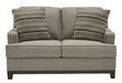 Whether your style is American classic, contemporary or an eclectic mix, this beautifully versatile loveseat is sure to look right at home. Distinctive elements include an exposed rail, designer accent pillows and decadent woven upholstery in a rich neutral shade inspired by tailored menswear.