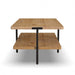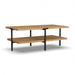 Sophistication meets rustic, industrial charm with the Millwork rectangular coffee table. Seamlessly blending high-contrast materials and finishes in perfect harmony, this table makes a captivating statement in any living space. A textured steel frame is highlighted by warm copper undertones, while a distinctive wood top and lower shelf exude character with natural knots, subtle saw marks and a white cerused finish that accentuates the rich umber wood grain.