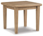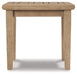 Discover a high-style alternative to traditional outdoor furniture. This outdoor end table marries sturdiness and style in such a delightful way. Better yet, it has the edge when it comes to affordability. For that much more weather protection, the table's eucalyptus wood frame with slat styling is treated to a 5-step finishing process.