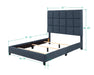 Bridger - Queen Upholstered Squares Panel Bed - Navy Blue Denim