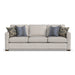 A Legacy of Luxury. Timeless sophistication meets modern versatility with the Milo three-cushion sofa, a spacious and upscale piece that is curated to fill larger spaces with coziness and is built to last for generations. Featuring softly sloped arms with French seams, thoughtful welt detail on the seat cushions, and included accent pillows; customize this sofa with hundreds of fabric choices. For distinctive style designed to be everlasting, look no further than Milo.